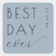 This wedding sticker features a minimalist design with a light blue background, showcasing the phrase "BEST DAY ever" in bold, uppercase letters paired with elegant cursive script. The layout is clean and modern, utilizing generous spacing to highlight each word while maintaining balance. With its contemporary style and celebratory mood, this sticker is perfect for marking special moments on your big day.