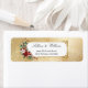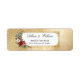 Créez un mariage hivernal inoubliable avec cet élégant design étiquette de adresse de vacances avec un luxuriant spray de roses de Noël, poinsettia, saint et pin, étiquette blanc avec une bordure dorée ornée et un opulent faux dégradé d'or métallique damask arrière - plan. Comprend trois champs de texte.