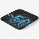 The background sets a sophisticated night-time mood with a deep black gradient and glowing "bokeh" light effects in soft blues and silvers. Finished with elegant, handwritten script typography in metallic silver and teal, this tableware is perfect for an elegant evening party, a gala-themed birthday, or a glamorous "Denim and Diamonds" event. Easily customize this template by adding the birthday honoree's name and the event date to create a truly unique keepsake for your milestone celebration.