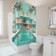 Experience the luxury of the “Opulent Mid-Century Modern Poolside” shower curtain, a standout piece from the “Posh Pools” collection from H2OArt by AlexSandra. This design features a two-story home with teal walls and peach and white accents, showcasing mid-century modern architecture. The balcony overlooks a stunning pool, with reflections of the house and palm trees in the clear turquoise water. Teal lounging chairs add to the serene setting, while rolling hills in the background complete the picturesque scene. This shower curtain is perfect for those who appreciate a blend of elegance and tranquillity in their bathroom decor.