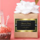 The design features a noble shimmering gold frame with fine decor lines, on a plain black background.