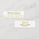 Ces cartes nominatives maigres simples et élégantes d'obtention du diplôme sont faites en tous les blanc et or et ont un chic, vibe d'art déco. L'avant inclut la pièce pour le nom du diplômé supérieur et le nom d'école au-dessus d'une frontière rayée. Sur le dos, la conception a un embellissement de laurier/or de fougère avec l'année d'obtention du diplôme d'école. Ces belles insertions de carte peuvent également "être customisées" ainsi la couleur blanche d'arrière - plan peut être changée de chaque côté. Célébrez votre obtention du diplôme avec ces cartes élégantes d'insertion d'obtention du diplôme. Utilisez les modèles faciles pour personnaliser.