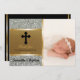 Le beau baptême d'argent et d'or ou la photo de baptême vous remercient carde la photo verticale du bébé du côté droit. L'arrière - plan du côté gauche est les parties scintillantes argentées de faux pour un regard brillant. Lit le Merci pour partager mon jour spécial dans le noir et or avec la date en or assorti. La croix chrétienne orne le dessus. Le nom du bébé au fond dans le lettrage élégant de manuscrit. Mince, le ruban métallique de regard d'or au centre sépare les deux moitiés. Le dos a l'arrière - plan noir assorti et l'assortiment, les frontières métalliques de ruban d'or de faux. Note : Toutes les images sont imprimées. Parties scintillantes ou métal non réelles. Élégant, le baptême de bébé vous remercient des cartes de montrer votre appréciation pour vos invités pour le bébé ou le bébé. Cliquez sur l'option de personnaliser pour changer des couleurs des textes, la taille, et des styles de police. Visitez notre magasin en ligne de Zazzle.com/angela65 pour autre personnalisé, cartes de baptême de photo.