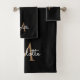 Ensemble de serviettes chic noir et or à monogramme. Vous pouvez personnaliser le nom, le monogramme et personnaliser la police et les couleurs pour créer votre propre design unique. Conçu par Thisisnotme