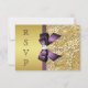 Élégantes cartes RSVP plates personnalisées dorées et violettes - pour tout événement - avec de beaux sequins, des nœuds et des rubans imprimés brillants et de jolis diamants bling bijoux sur un fond dégradé doré glamour. NOTEZ S'IL VOUS PLAÎT : Ce sont des graphiques imprimés plats - aucune partie en relief.Si vous avez besoin d'aide pour personnaliser votre produit, veuillez me contacter via ma boutique. Je serai ravi de vous aider.