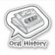 Oral history icon. Sketch of a book with audio cassete tape cover inside a speech bubble. Vector icons with customizable colours. Custom text.