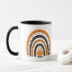 Against the clean canvas of white ceramic, a playful boho rainbow takes centre stage, alternating between vibrant orange and bold black. This rainbow isn't just a spectrum of colours; it's a symbol of the season's spirit, ready to add a pop of festive cheer to your daily routine.