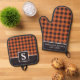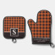 Orange And Black Gingham Plaid Chequered Monogramm Oven Mitt & Pot Holder Set