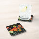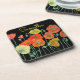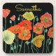 Orange and Black Poppies art Red Yellow Floral Coaster