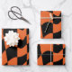 Orange and Black Warped Chequerboard Wrapping Paper Sheet