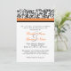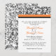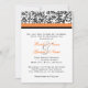 This classy invitation features black floral print design patterns and a touch of orange with a bar that runs across the top on the front. This beautiful and elegant wedding invitation is great for weddings with orange, white, and black colours, or during the holidays. Look for matching RSVP in my shop!