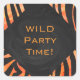 Orange and Black Zebra Monogram Square Sticker