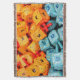 Photo of colourful orange and blue dreidels. Image by Adiel lo, wikicommons.