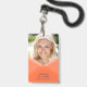 A modern photo badge featuring an orange layered geometric design on the front where you can also add your photo and a blue colour back side. Perfect as an office badge for your staff and also a great way to introduce yourself at meetings or events.