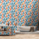 Winter themed watercolor blue and orange pine tree pattern stick and peel wallpaper.