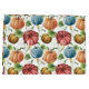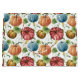 Trick or treat with these cool blue and orange pumpkins with green leaves in a samples pattern on a light yellow background.