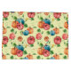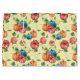 Cool, blue and orange pumpkins with green leaves in a samples pattern on a light yellow background.