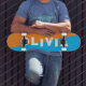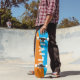 simple orange and blue skateboard for him, for her or for them is your personalized name in a bold funky and grunge distressed lettering. Get the prefect abstract design for a teen birthday or Christmas present. Just write your own name for a custom skateboard.
