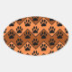 Orange And Brown Chevron With Dog Paw Pattern Oval Sticker