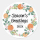 Orange and Candy Cane Season's Greetings Wreath Classic Round Sticker