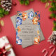 This striking watercolor floral bouquet showcases vibrant orange blooms paired with rich cobalt blue flowers, hand-painted in a soft, airy style. Tied with a flowing neutral ribbon, this design blends bold color with elegant watercolor texture.