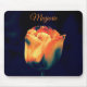 Personalize this dramatic orange and green tulip mousepad with your name.