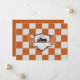Orange and grey chequered and motorcycle announcement card. Checkout the rest of the collection.