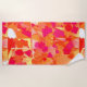Beach towel in in a Kandinsky-inspired abstract composition in shades of orange, peach and hot pink