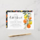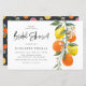 Invite family and friends to your event with this botanical bridal shower invitation. It features a watercolour garland of oranges, lemons, orange blossoms and greenery with a matching citrus pattern. Personalize by adding a name, date, time, venue, address and other event details. This citrus invitation is perfect for summer bridal showers. Matching items are available.