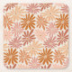 Orange and Pink Retro Floral Groovy Square Paper Coaster