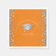 This modern design features a graduation hat and confetti in silver on a background of Orange with white text.