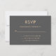 This chic, modern wedding response card features a smoky grey background with orange coloured text. The back of the RSVP card features an orange coloured world map. Perfect for the wedding of any couple who loves to travel, or anyone having a destination wedding.