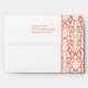 This orange and white damask linen envelope matches the wedding invitation shown below, and is designed to replace the plain white envelopes that come with the invitation and/or thank you cards. Customize it to have your own return address on it. If you require any other matching items, please email niteowlstudio@gmail.com with your request.