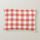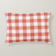 Reddish orange, light orange, and white squares form a bold, buffalo plaid or gingham pattern in this design.
