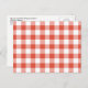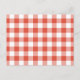 Reddish orange, light orange, and white squares form a bold, buffalo plaid or gingham pattern in this design.