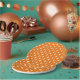 Orange with white patterned paper plates. Cool for Halloween table setting and get togethers.