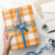 A wrapping paper designed with an orange and white plaid pattern in large size. Customize the white background among other options.