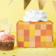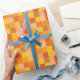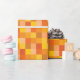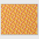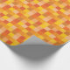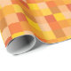 This wrapping paper features squares in different shades of orange and yellow in a pixelated pattern.