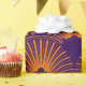 An Elegant orange art-deco geometric pattern over a dee-purple background that is changeable.