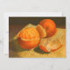 Flat card illustration featuring a traditional still life painting of oranges. Artwork: Oil pastel. Copyright: Dominic A. White.