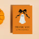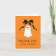 Simply and sweet, this folded, pumpkin orange thank you note card is the perfect way to send thanks after a baby shower, birthday, party and more. Easy to personalize text sits below a sweet, happy little ghost that looks adorable under the arch of a romantic black ribbon bow. The inside of the card is blank for adding your personal hand-written message of thanks.
