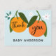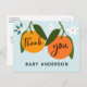 Thank your guests for celebrating the parents to be! This fun fruit-themed baby shower thank you postcard features adorable orange illustrations. Personalize with your information or click "Click to customize further" to edit font styles, size and colours.