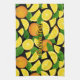 Orange slices and leaves. Seamless pattern. Custom background colour. Custom text.