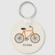 A keychain featuring an illustration of an orange bicycle. Personalize with your name under bike.