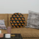 Accent your home with this round throw pillow that features the photo image of an orange bloom of the tropical Bird of Paradise Plant printed in a repeating pattern on a black background. Also referred to as a Crane Flower. A lovely, floral design! Select your pillow fabric style.