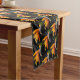 Orange Bird of Paradise Plant Pattern on Black Short Table Runner