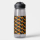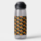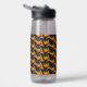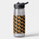 Whether working out at the gym, or jogging in the park, stay quenched wherever you go with this clear, plastic water bottle that features the photo image of an orange bloom of the tropical Bird of Paradise Plant printed in a repeating pattern on a black background. Also referred to as a Crane Flower. A stunning, floral design! Select your water bottle size and colour.