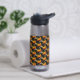 Orange Bird of Paradise Plant Pattern on Black Water Bottle