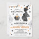 Watercolor elegant orange black a baby is brewing witch gender neutral baby shower invitation, Halloween card invite.