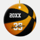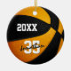 This cool team colours basketball ornament for boys or girls features a realistic looking basketball that has alternating black and orange recolored panels - personalize the front and back of ornament with year and player's name in an "autograph" style font overlying the athlete's jersey number - by katz_d_zynes